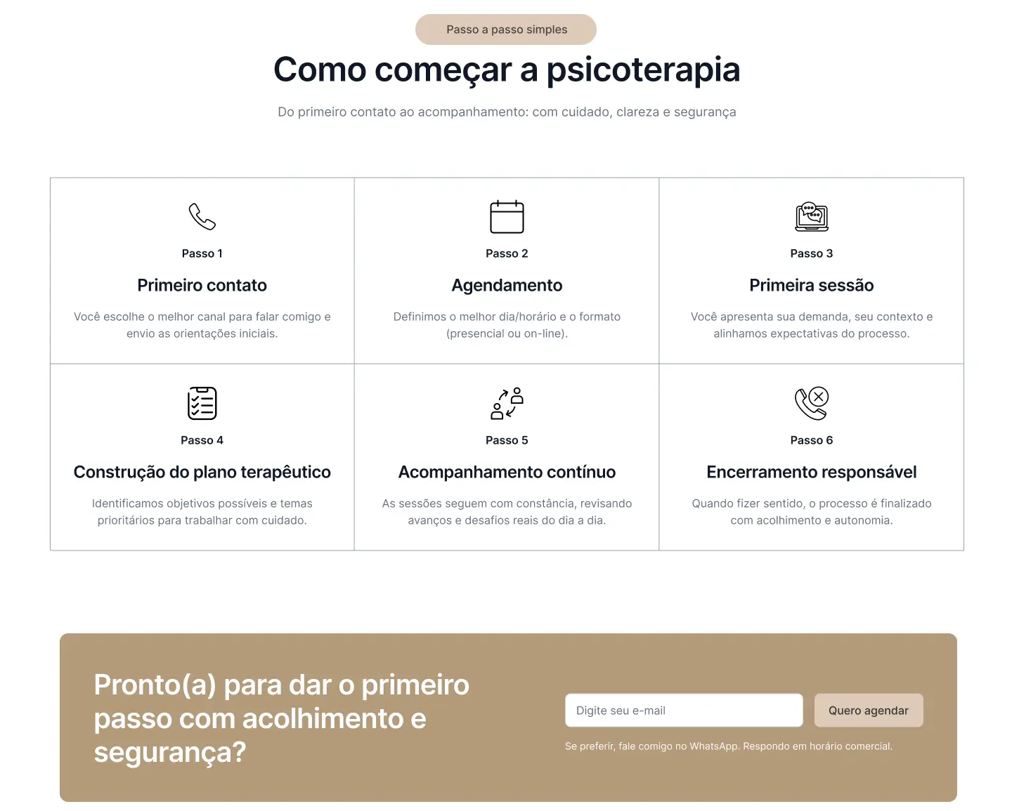 Site acolhedor e confiável para psicologia, com foco em agendamento.