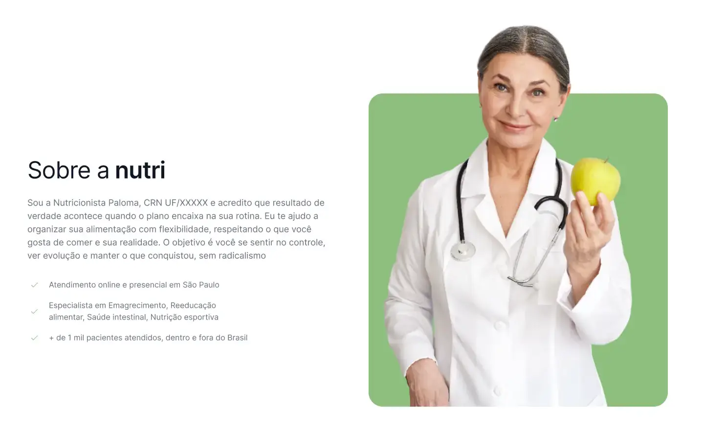 Site claro e confiável para nutricionista, com foco em agendamento.